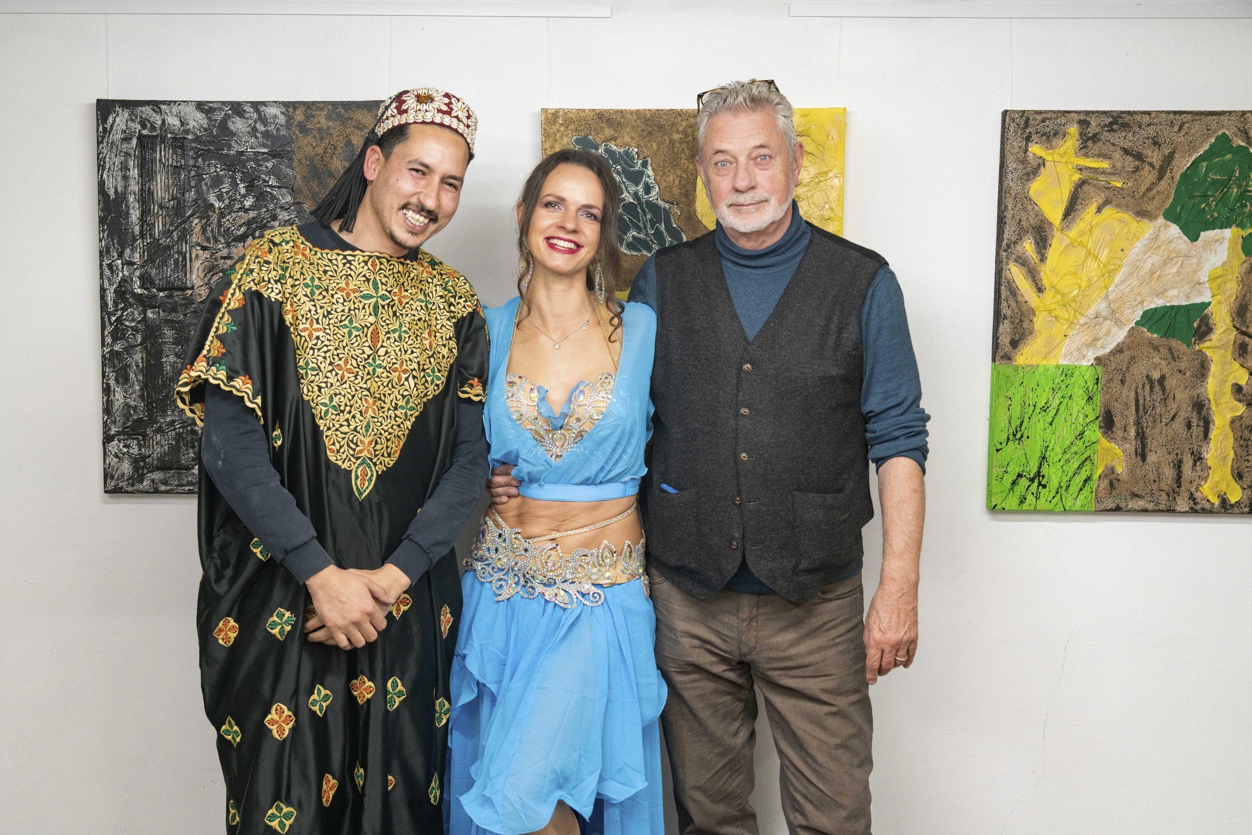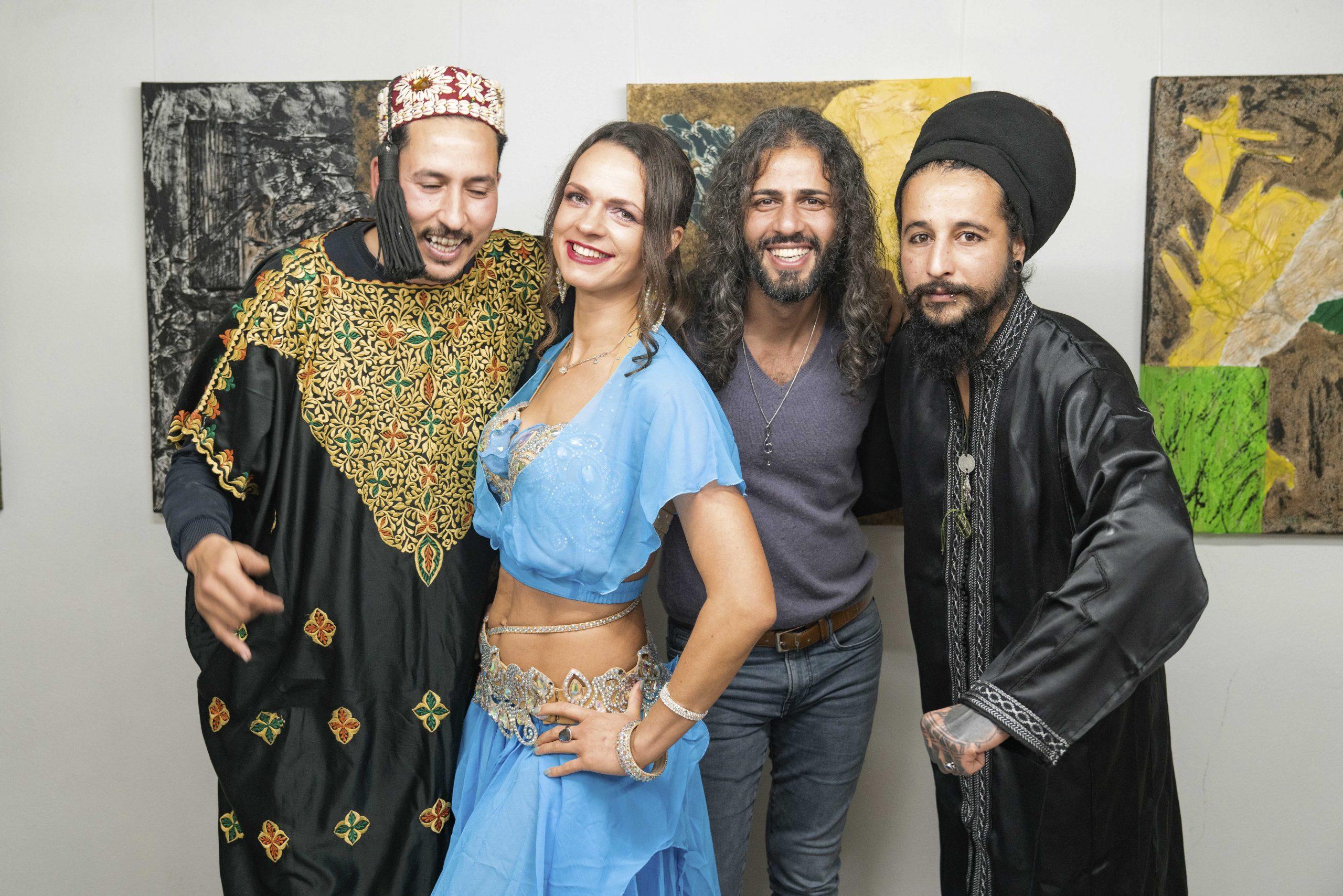 Die Eröffnung der Ausstellung wurde durch eine musikalisch-tänzerische Performance der Tänzerin Maria und des nordafrikanischen Musikers Ali Badaou begleitet.