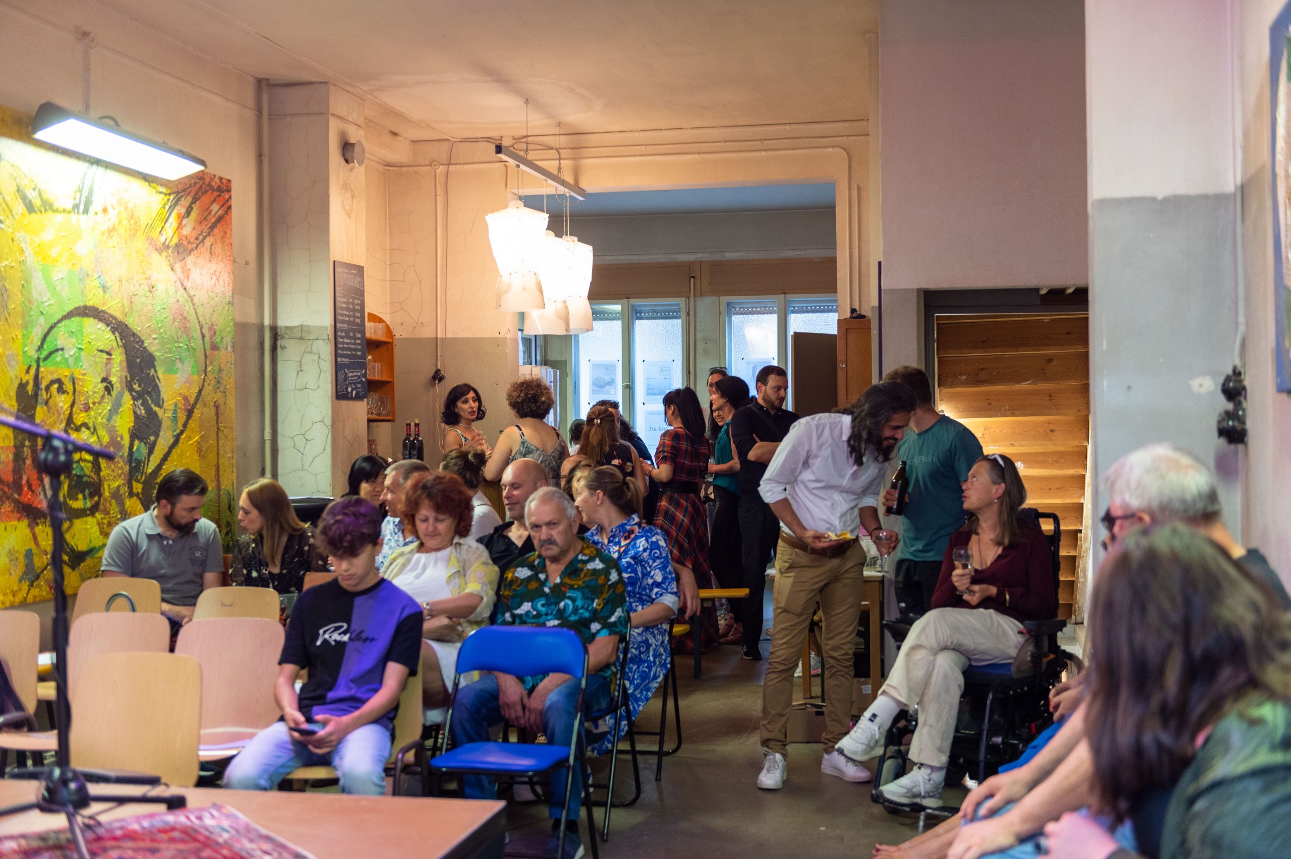Am Samstag, den 23.07.2022 entführte uns die Künstlerin Veriko Modebadze in der Pop-Up Galerie …and art. nach Georgien. Es wurde eine Kurzgeschichte des berühmten georgischen Schriftstellers Otia Ioseliani gelesen und musikalisch begleitet. Dazu gab es georgischen Wein.