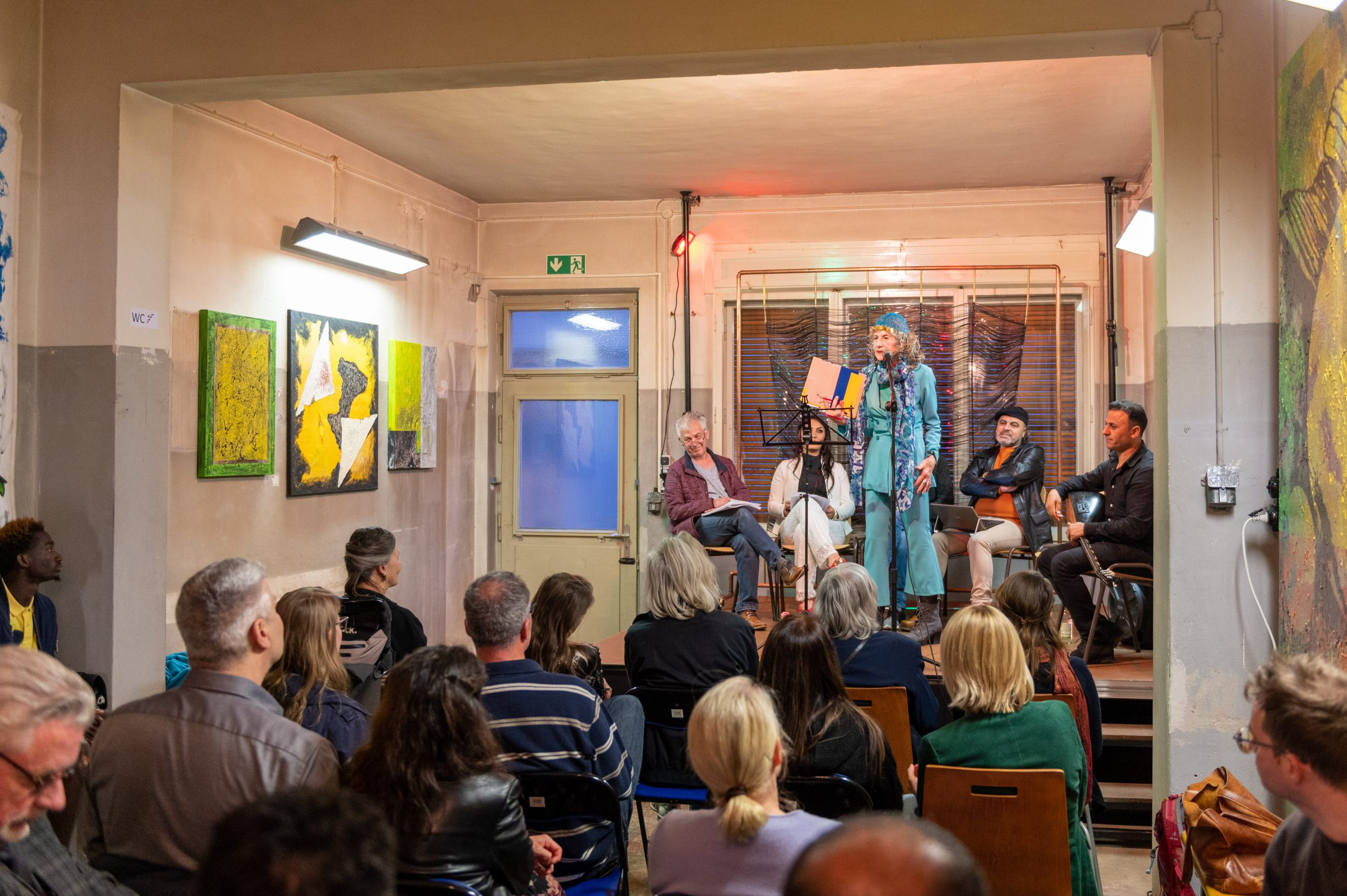 Im Rahmen der Dichterlesung können selbstverständlich alle Werke unserer aktuellen Ausstellung in den Galerie-Räumen im Untergeschoss unserer Pop-Up Galerie besichtigt werden.